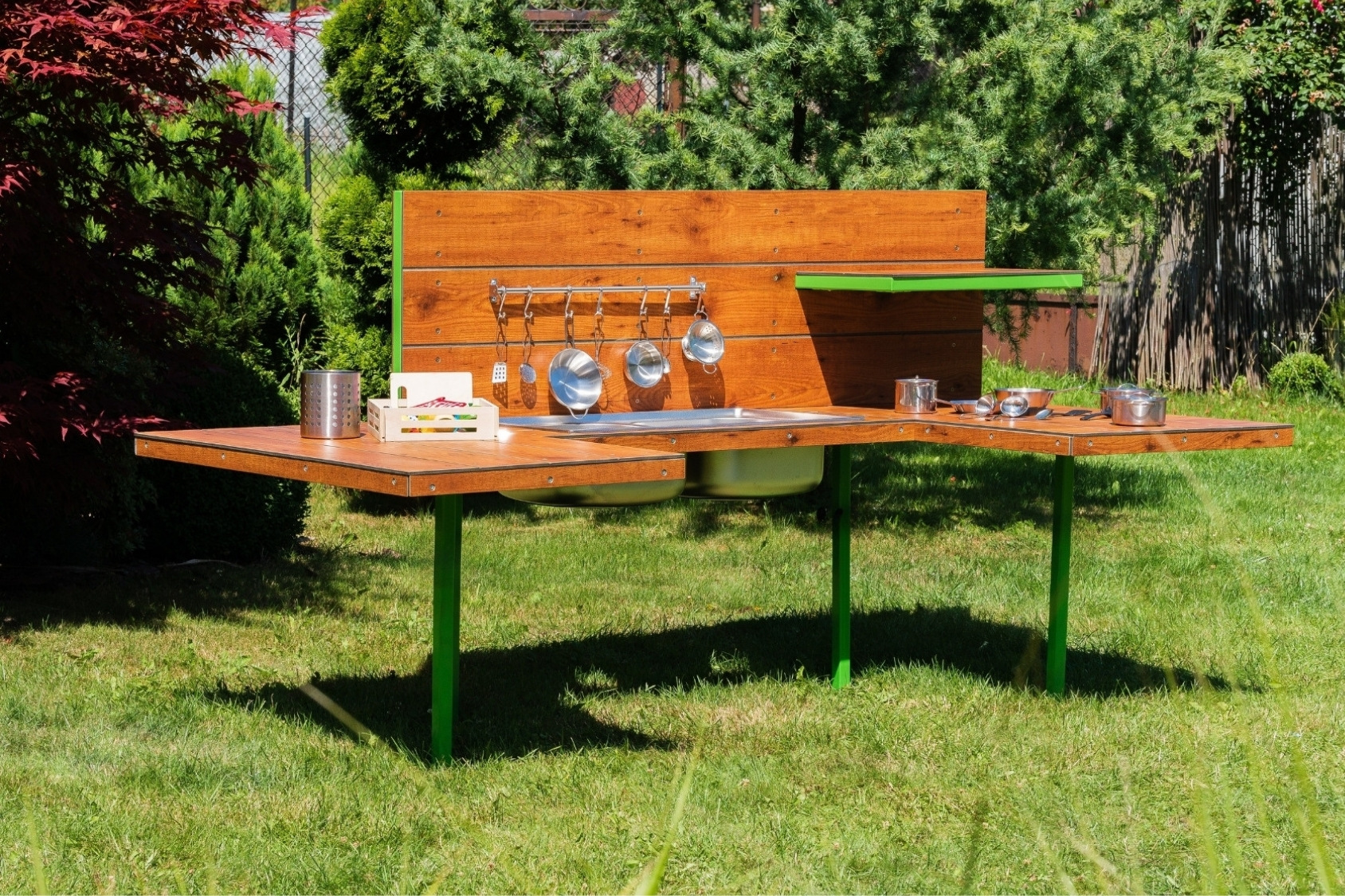 Eco-Kitchen is a versatile mud kitchen that supports child development through play, movement, and contact with nature – making it a functional and educational garden kitchen.