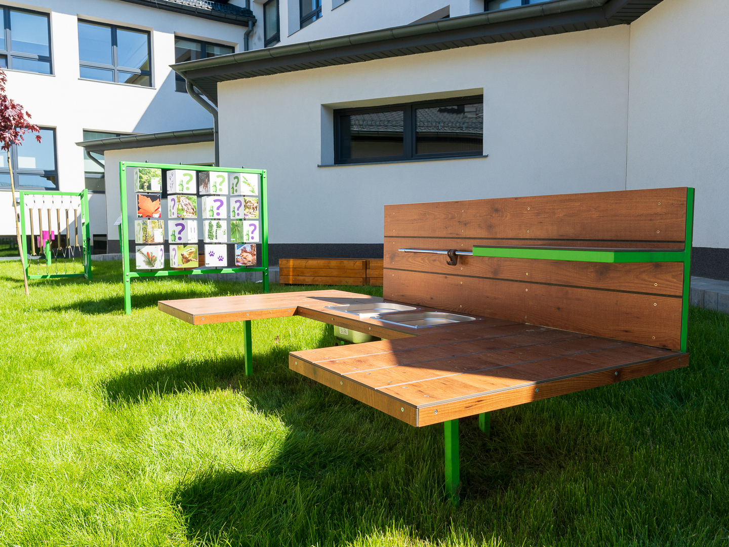• A large worktop – we spent a lot of time determining the perfect dimensions, and our research showed that the most important feature of a garden kitchen for children is… the work surface! Some projects require plenty of space.