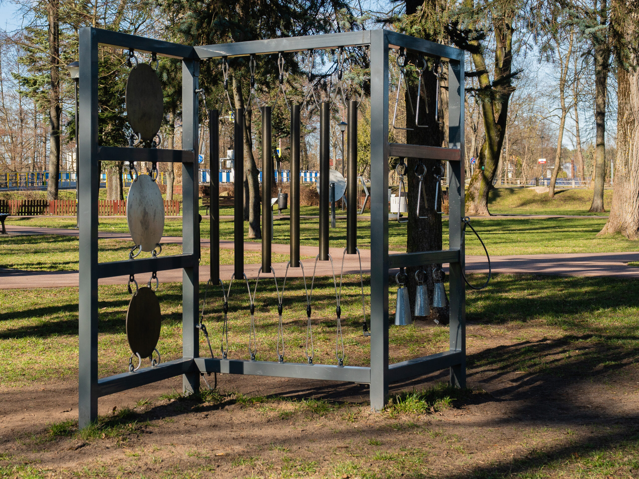 An outdoor orchestra is a relatively new feature on playgrounds. Musical sensitivity should be developed from an early age, as music helps build many important skills such as logical thinking, attentive listening, and the integration of the senses.