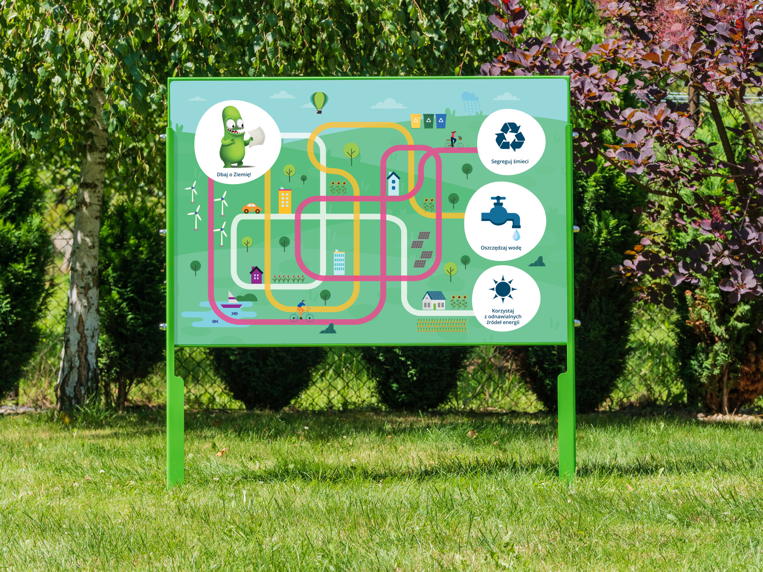 The board with a bullet track is an excellent base for outdoor teaching activities. It can be used to set children specific tasks, such as constructing tracks of various lengths, speeds or degrees of complexity. It is also ideal as a tool for group work, where children learn cooperation, integrate and develop communication skills.