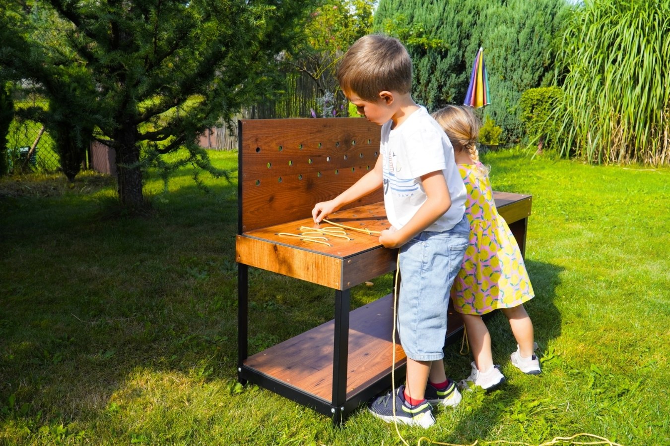 We conducted many conversations with parents, educators and owners of family-friendly places to create a reliable attraction for many years. As a result of these conversations, the Eu-Genius Kitchen was created, followed by the Workshop. Both devices are an alternative to plastic garden toys and wooden, unstable playgrounds.