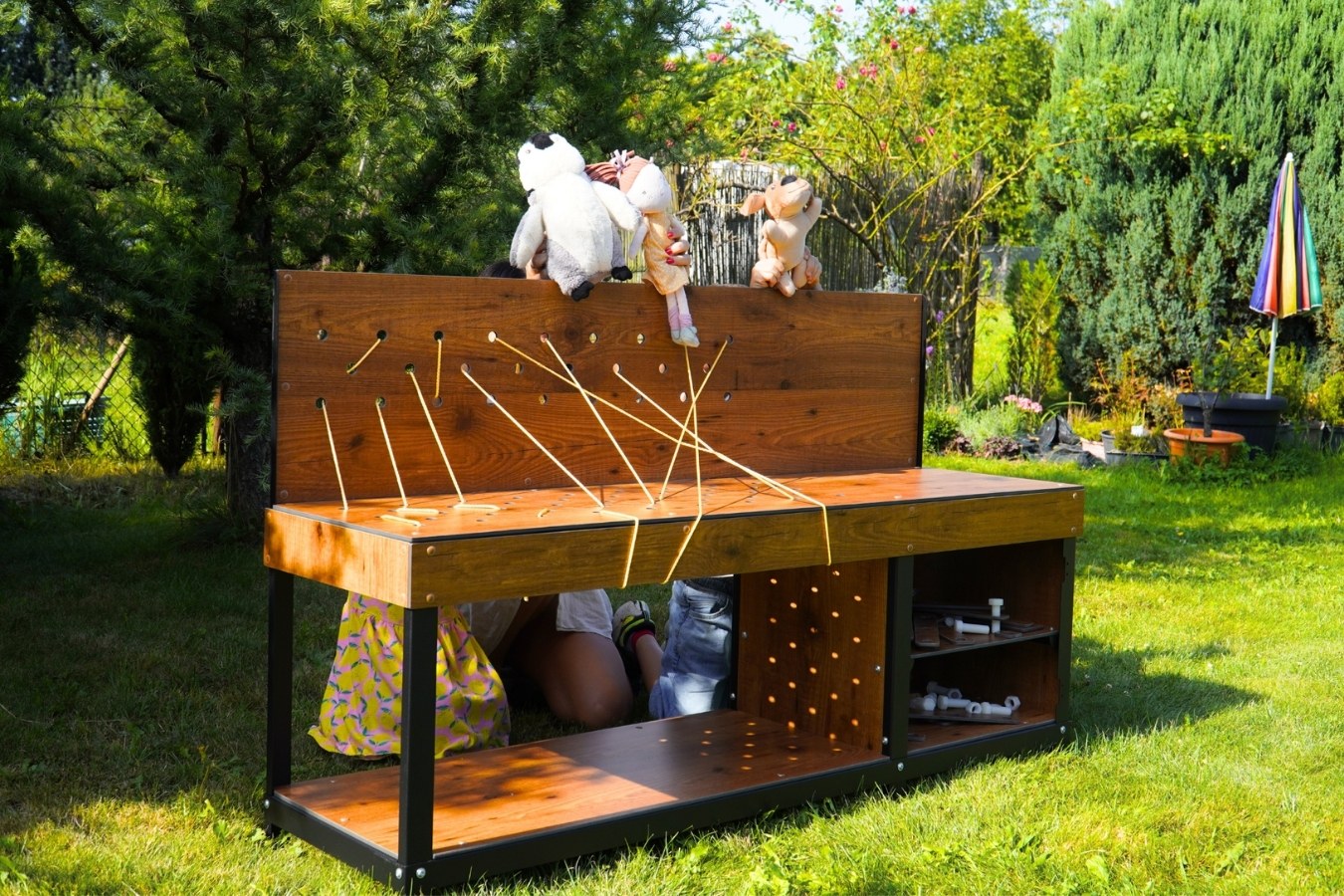 • Large worktop  – we spent a lot of time choosing the right dimensions and our research showed that the most important thing in a garden workshop for children is… the worktop! Some projects require a lot of space!